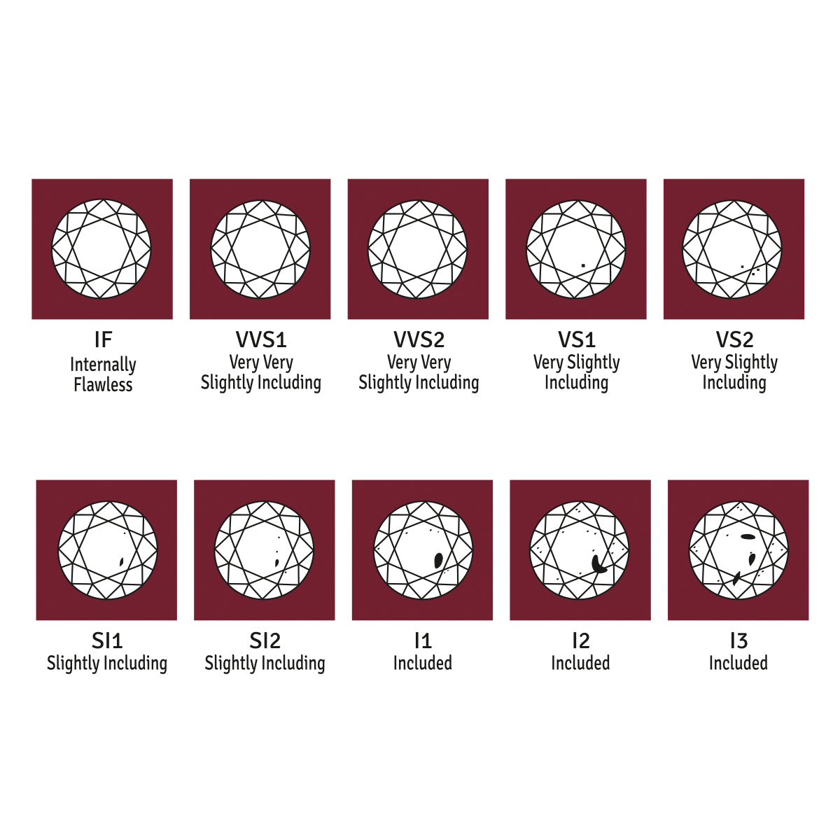 The clarity of a diamond refers to the presence or absence of tiny inclusions or birthmarks within the diamond. This is determined by the number, size, nature, location and relief of the internal imperfections. At BandhelJewellers, we use IF, VVF and VVS diamonds.