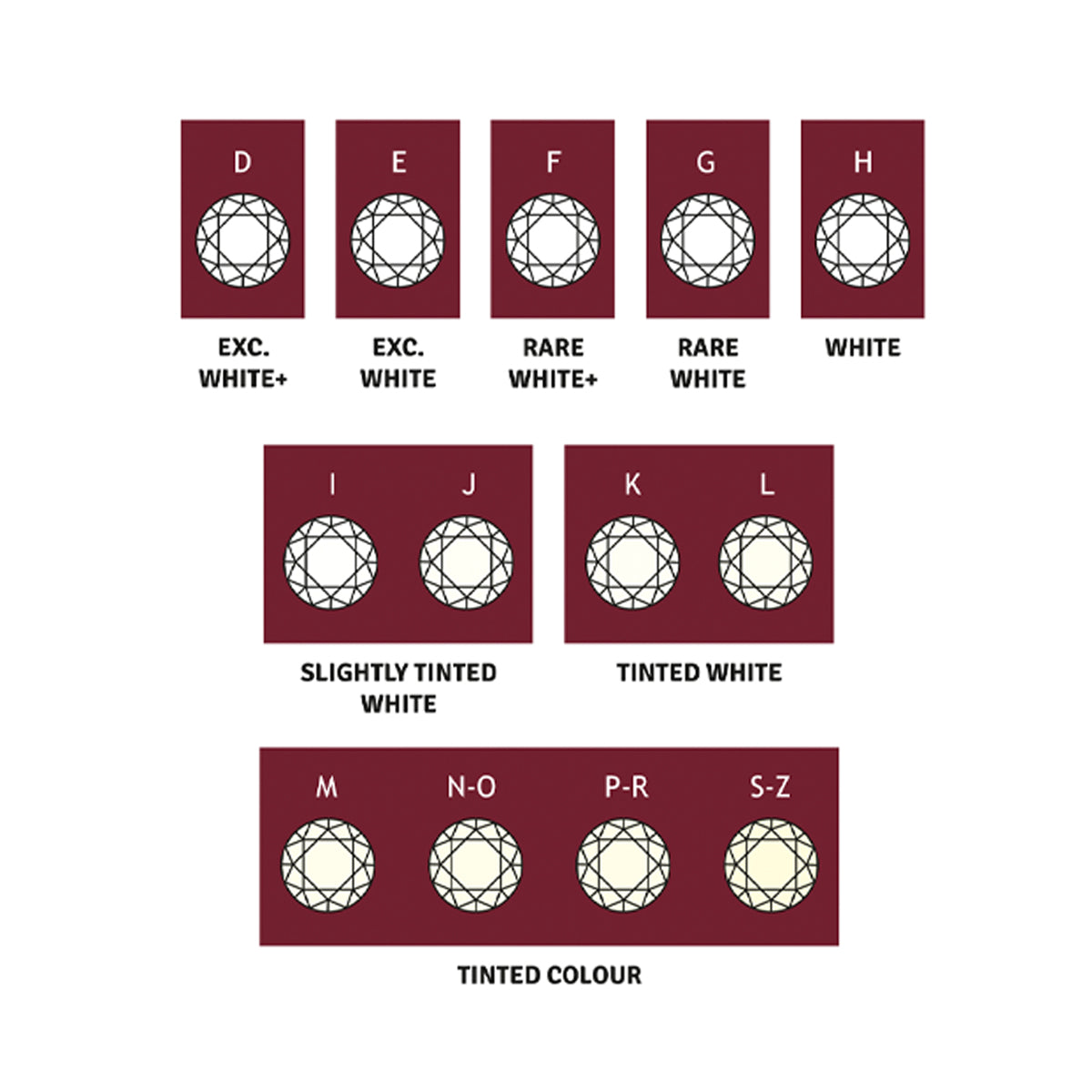 The colour of a diamond ranges from exceptional white to tinted colour. A diamond is considered colourless if it is D, E or F grade and rare white to white it it is G or H grade. Diamonds start to appear yellow if the colour grade is lower than J. At BandhelJewellers, we use diamonds that range from D to H colour.