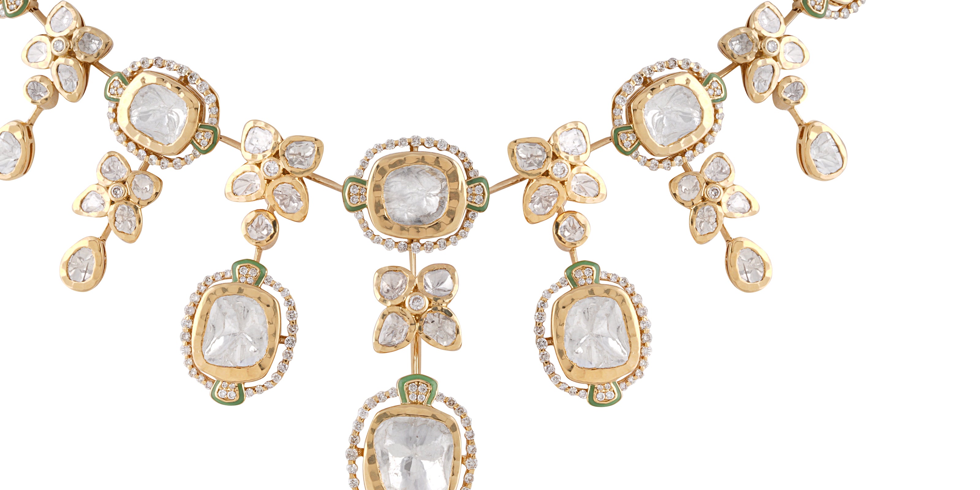Polki is essentially a diamond in its purest and most natural form - uncut and unpolished. The stones are often retained in their original version to form jewellery, making each piece unique since no two polki stones can look alike.